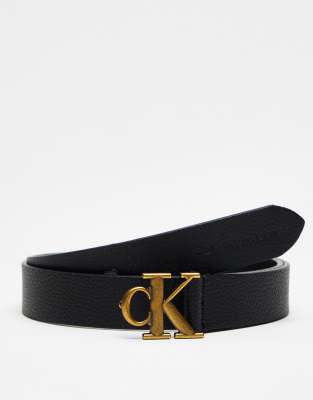 Calvin Klein Jeans – Ledergürtel in Schwarz mit Monogramm-Logo