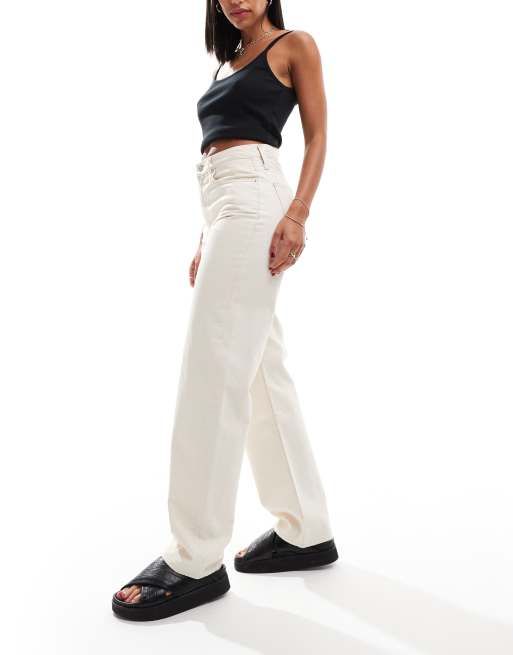 Calvin Klein Jeans – Locker geschnittene Jeans in Ecru mit hohem Bund
