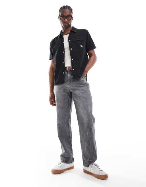 Calvin Klein Jeans – Oversize-Jeanshemd in Schwarz
