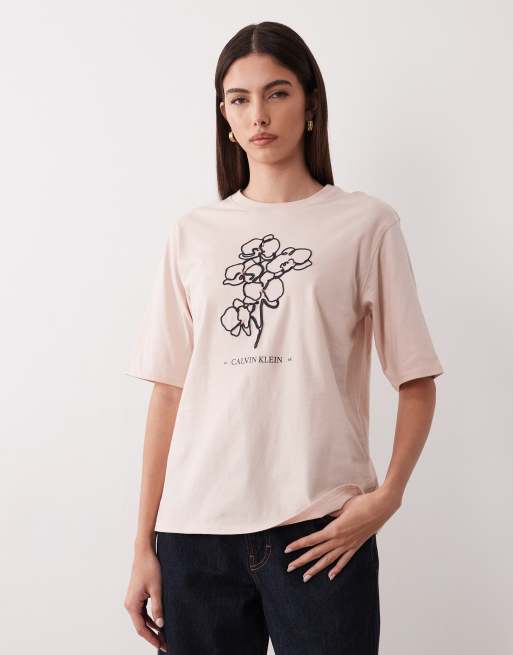 Calvin Klein Jeans – Oversize-T-Shirt in Blassrosa mit Blumengrafik