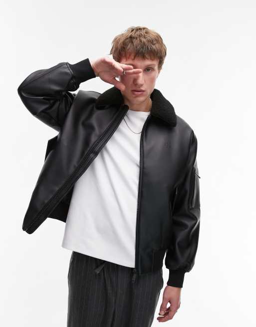Calvin Klein Jeans – Pilotenjacke aus Kunstleder in CK-Schwarz