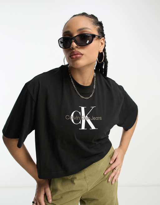 Calvin Klein Jeans Plus – T-Shirt in Schwarz mit Monogramm-Logo
