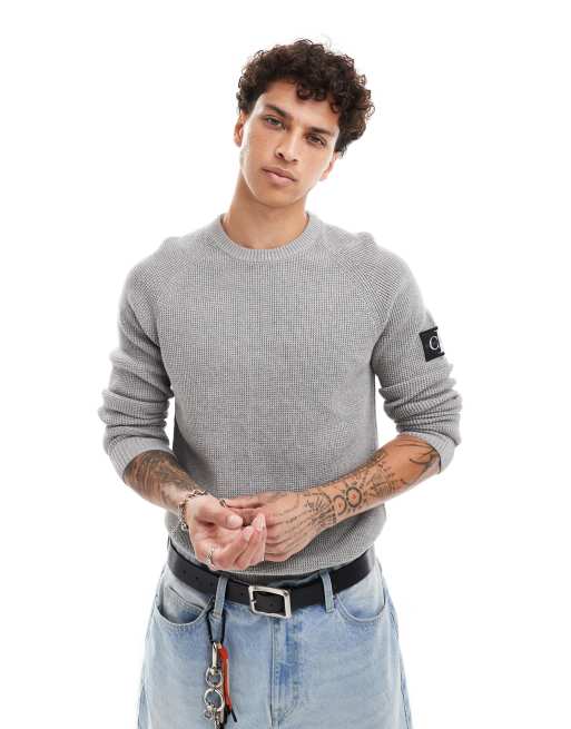 Calvin Klein Jeans – Pullover in Grau mit Aufnäher