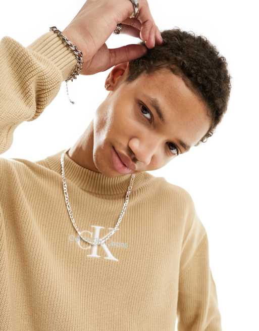 Calvin Klein Jeans – Pullover mit Monogramm-Logo in Sand