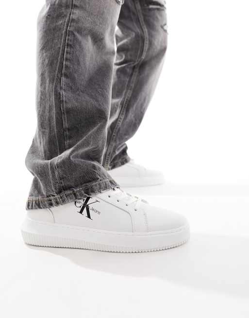 Calvin Klein Jeans – Sneaker zum Schnüren in Weiß mit Monogramm-Logo und Gummisohle
