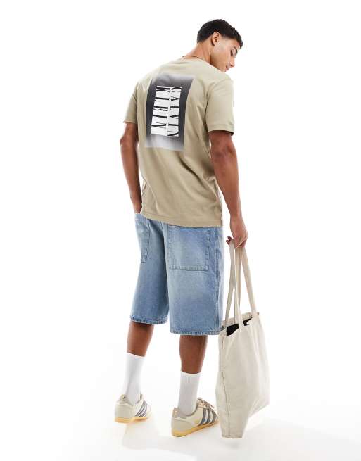 Calvin Klein Jeans – T-Shirt in Beige mit Ombré-Rückenprint und kastigem Schnitt