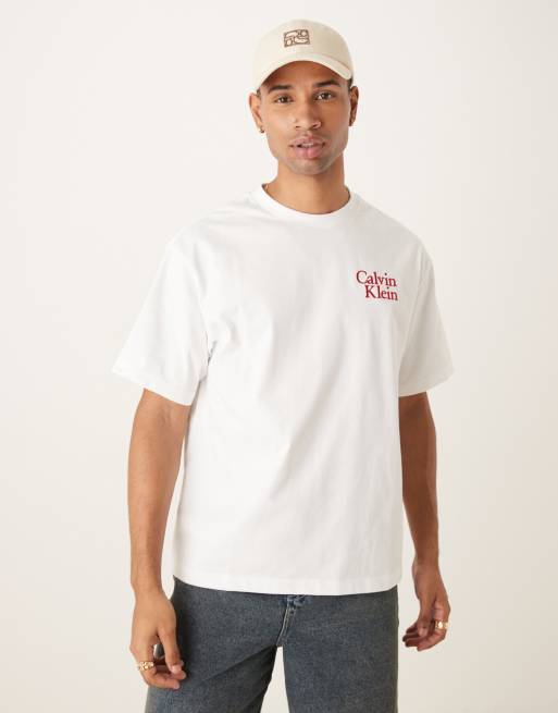 Calvin Klein Jeans – T-Shirt mit Logo auf der Brust in Weiß