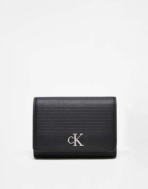CK Jeans – Dreifach klappbare Geldbörse aus Leder in Schwarz mit Monogramm