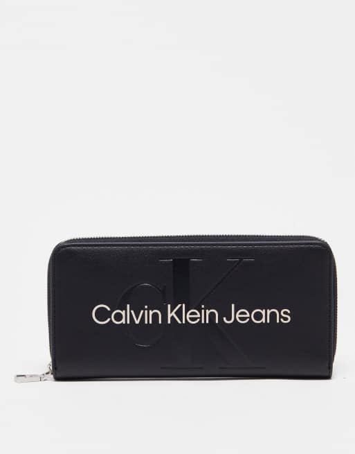 CK Jeans – Geformte Geldbörse in Schwarz mit Monogramm und Rundum-Reißverschluss