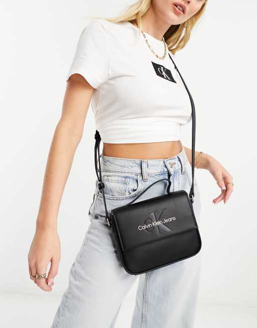 CK Jeans – Geformte, kastige Tasche in Schwarz mit Umschlagklappe