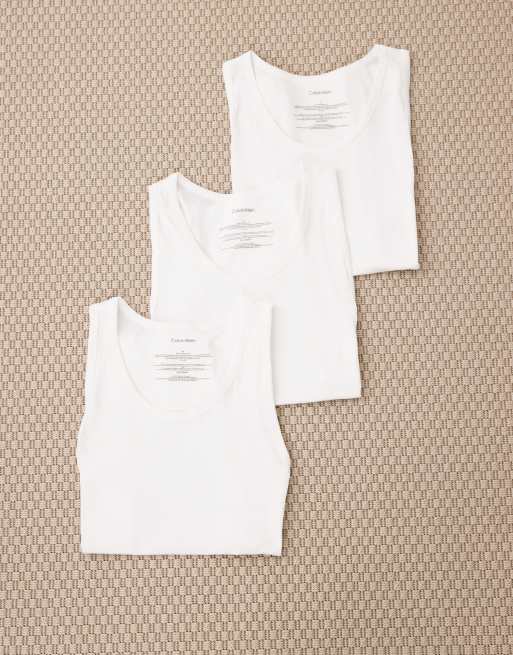 Calvin Klein – 3er-Pack Trägershirts in Weiß mit hohem Baumwollanteil