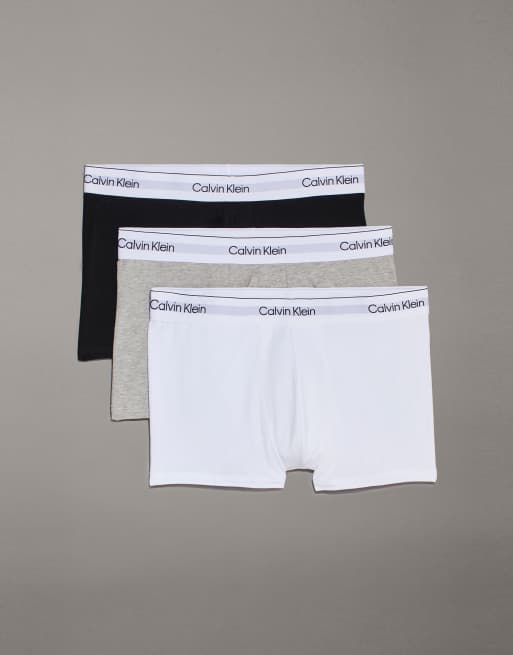 Calvin Klein – 3er-Pack Unterhosen aus Baumwollstretch in Schwarz/Weiß/Grau mit Logo