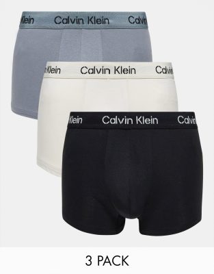 Calvin Klein – 3er-Pack Unterhosen in Schwarz, Grau und gebrochenem Weiß
