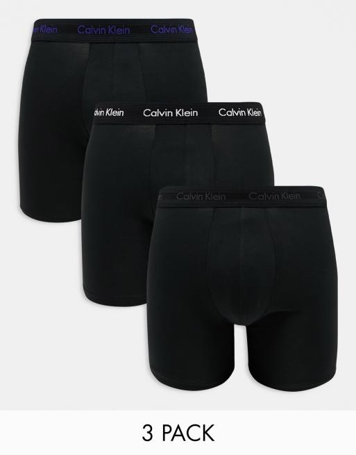 Calvin Klein – 3er-Pack Unterhosen in Schwarz mit farblich abgesetztem Logobund
