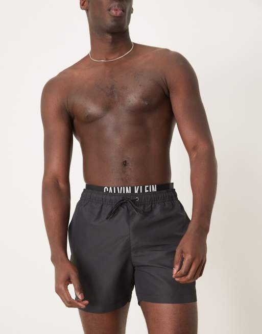 Calvin Klein – Badeshorts in Schwarz mit Logobund