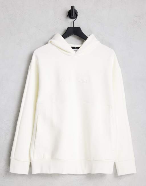 Calvin Klein – Bequemer Kapuzenpullover in Creme mit Logoprägung
