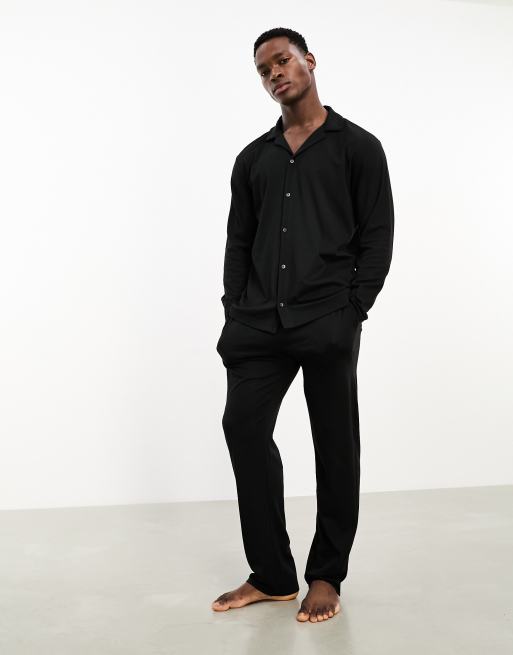 Calvin Klein – CK Black – Pyjama mit geknöpftem Hemd und Hose in Schwarz