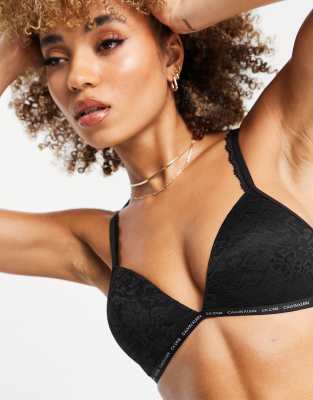 Calvin Klein – CK One – Leicht gefüttertes Spitzen-Bustier mit Logodetail in Schwarz
