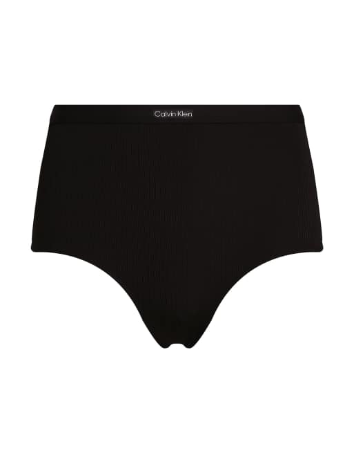 Calvin Klein – CK Rib – Bikinihose in Schwarz mit hoher Taille