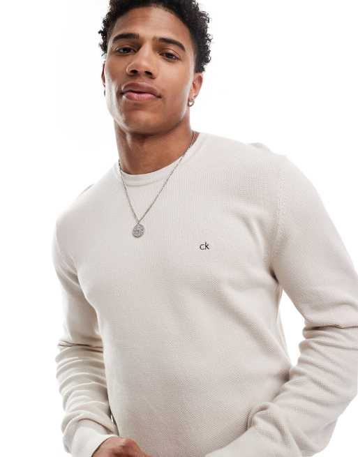 Calvin Klein – Fein strukturierter Strickpullover in Weiß