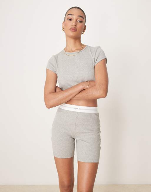 Calvin Klein – Gerippte, kurze Leggings in Grau