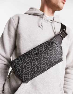 Calvin Klein – Gürteltasche mit Monogrammmuster in Schwarz
