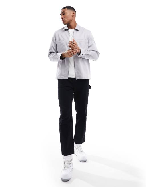 Calvin Klein – Hemdjacke aus Baumwolle in Hellgrau mit 3D-Taschen