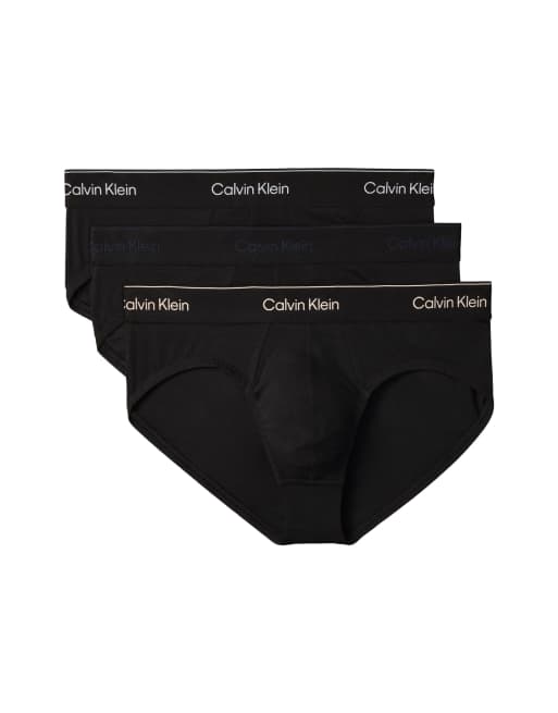 Calvin Klein – Icon Cotton Stretch – 3er-Pack eng geschnittene Hüftslips in Schwarz