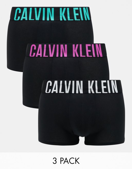 Calvin Klein – Intense Power – 3er-Pack Unterhosen aus elastischer Baumwolle in Schwarz mit Bund in verschiedenen Farben
