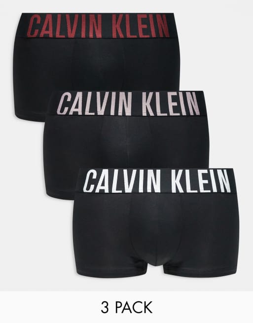 Calvin Klein – Intense Power – 3er-Pack Unterhosen in Schwarz mit tief sitzendem, farbigem Logo-Bund
