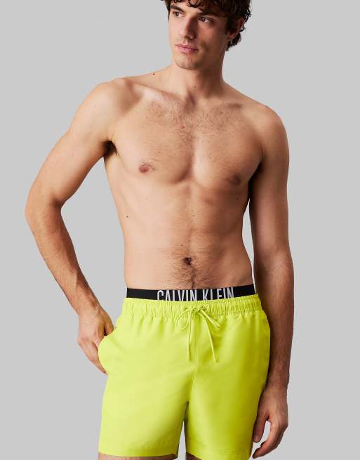 Calvin Klein – Intense Power – Badeshorts in Limonadengelb mit doppeltem Bund