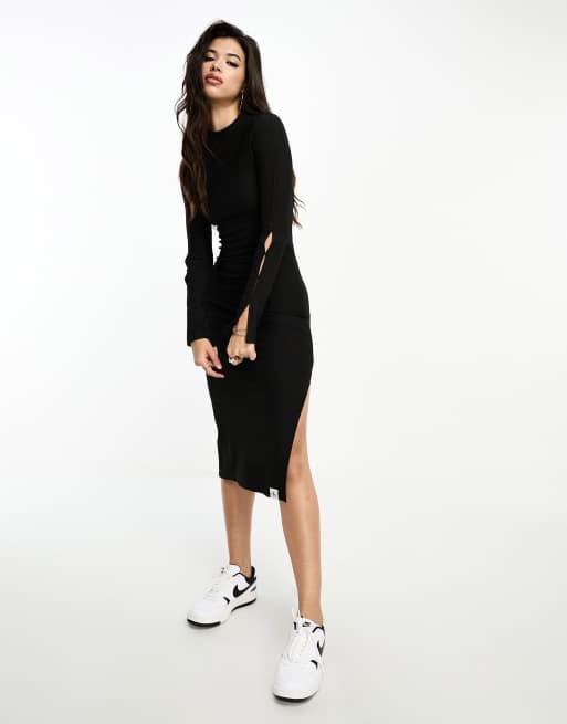 Calvin Klein Jeans – Langärmliges Maxikleid in Schwarz mit Schlitz
