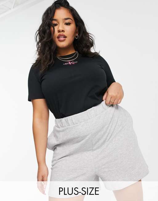 Calvin Klein Jeans Plus – Kurzärmliges T-Shirt mit Monogrammlogo in Schwarz