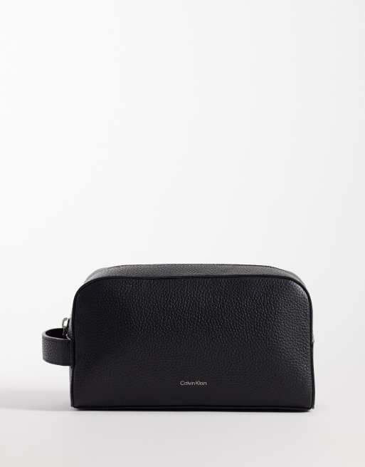 Calvin Klein – Kulturbeutel in Schwarz mit Reißverschluss und Logo-Foliendetail