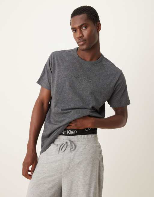 Calvin Klein – Lounge-T-Shirt aus Baumwolle in Dunkelgrau mit Logostickerei