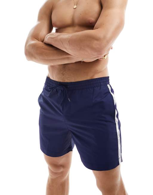 Calvin Klein – Mittellange Badeshorts in Marineblau mit Markenlogo, Kordelzug und Zierband