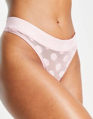 Calvin Klein – Modern Cotton – Gepunkteter Tanga in Muschelrosa