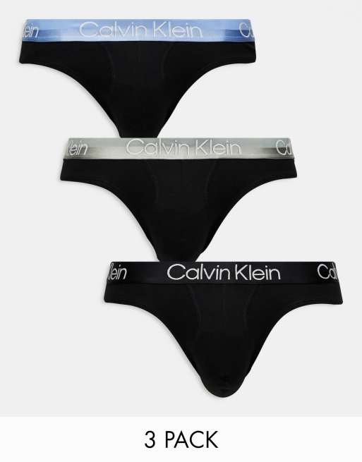 Calvin Klein – Modern Struktur – 3er-Pack Unterhosen in Schwarz mit farbigem Bund