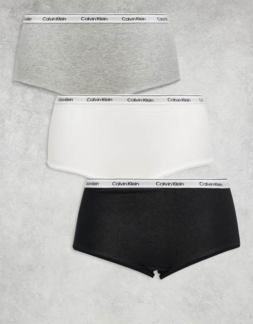 Calvin Klein – Moderne Boyshorts im 3er-Pack in Schwarz/Weiß/Grau mit Logobund