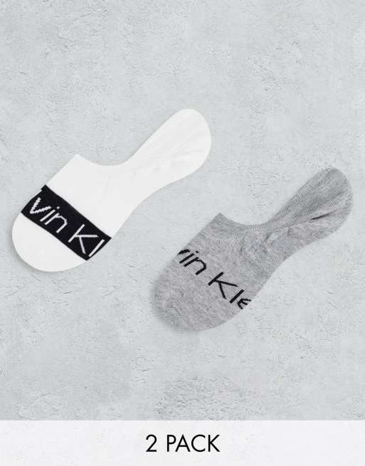 Calvin Klein – Nicht sichtbare Füßlinge in Weiß/Grau mit Logo im 2er-Pack