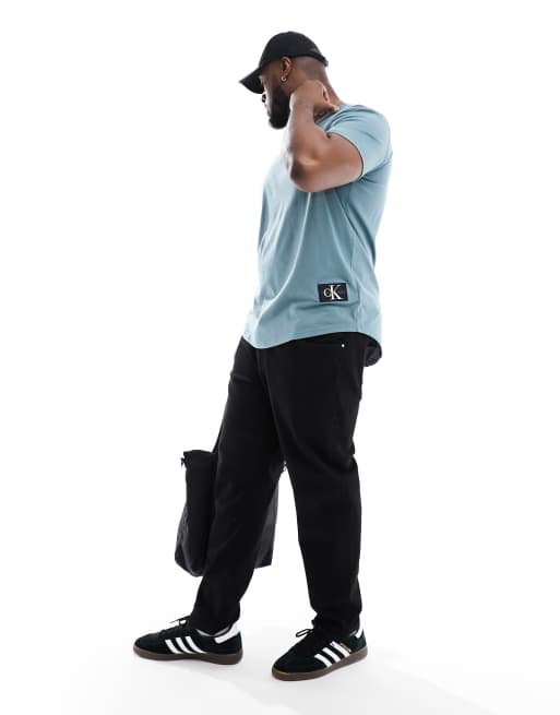 Calvin Klein Plus – Baumwoll-T-Shirt in Blau mit Aufnäher