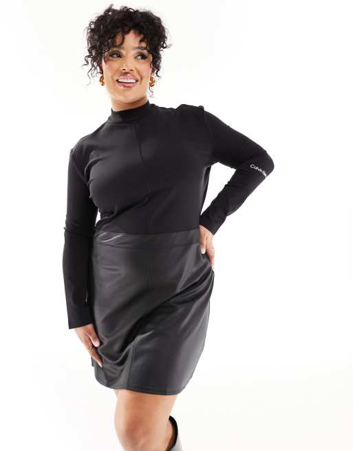Calvin Klein Plus – Beschichtetes Kleid in Schwarz
