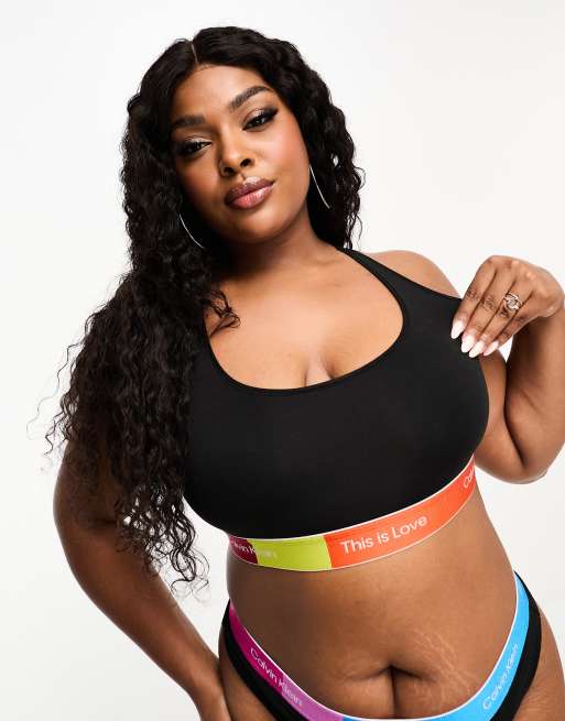 Calvin Klein Plus – Pride Collection – Bustier in Schwarz mit Kontrastdetail in Regenbogenfarben