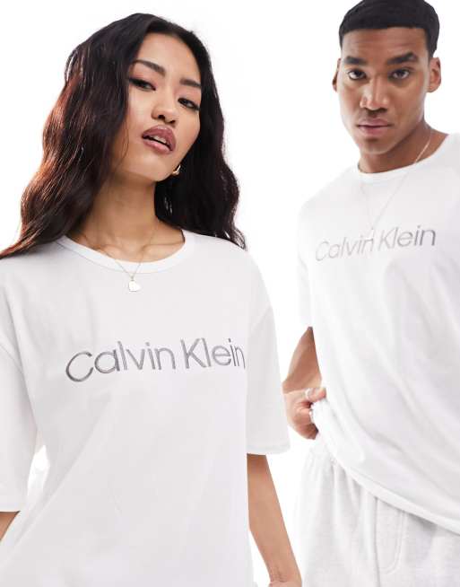 Calvin Klein – Schlaf-T-Shirt aus reiner Baumwolle in Weiß
