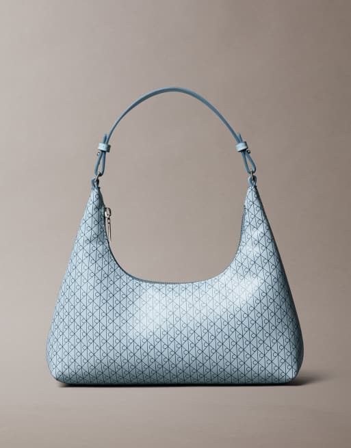Calvin Klein – Schultertasche in Hellblau mit Monogramm-Emblem-Logo