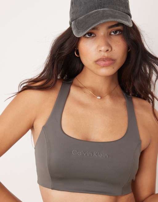 Calvin Klein – Sport-BH mit mittlerer Stützfunktion in Boulevard Gray