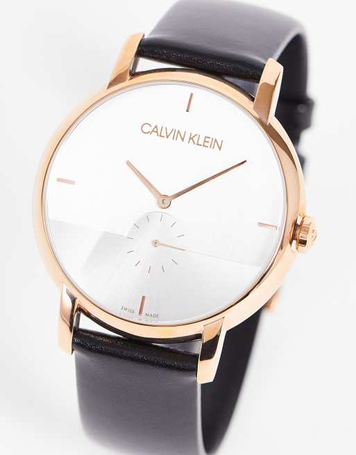 Calvin Klein – Uhr mit Lederarmband in Schwarz