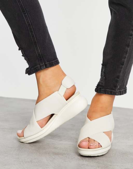 Camper – Balloon – Ledersandalen in gebrochenem Weiß mit überkreuzten Riemen und Plateausohlen