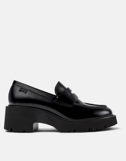 Camper – Loafer aus Leder in Schwarz mit dicker Sohle