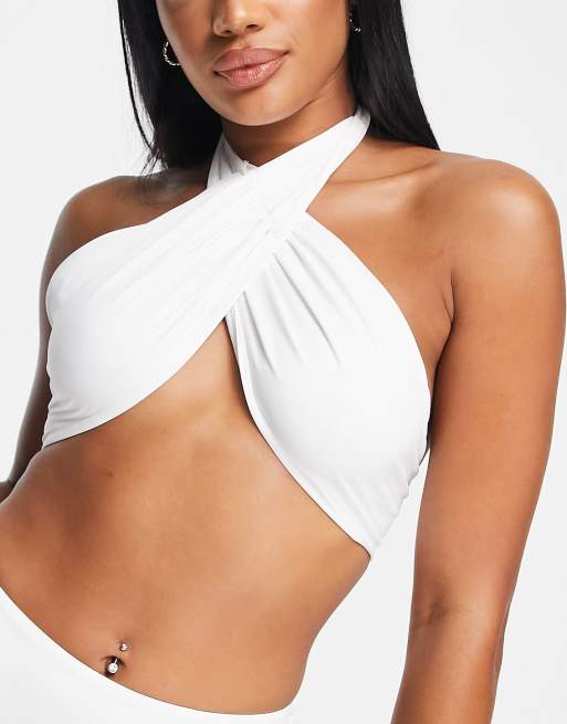 Candypants – Neckholder-Bikinioberteil in Weiß mit Wickeldetail